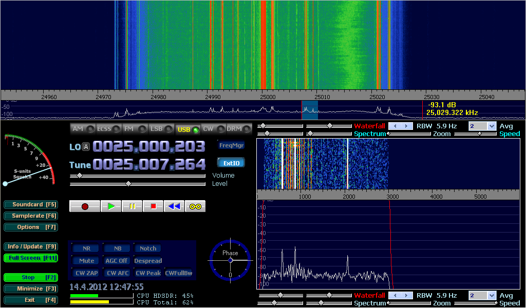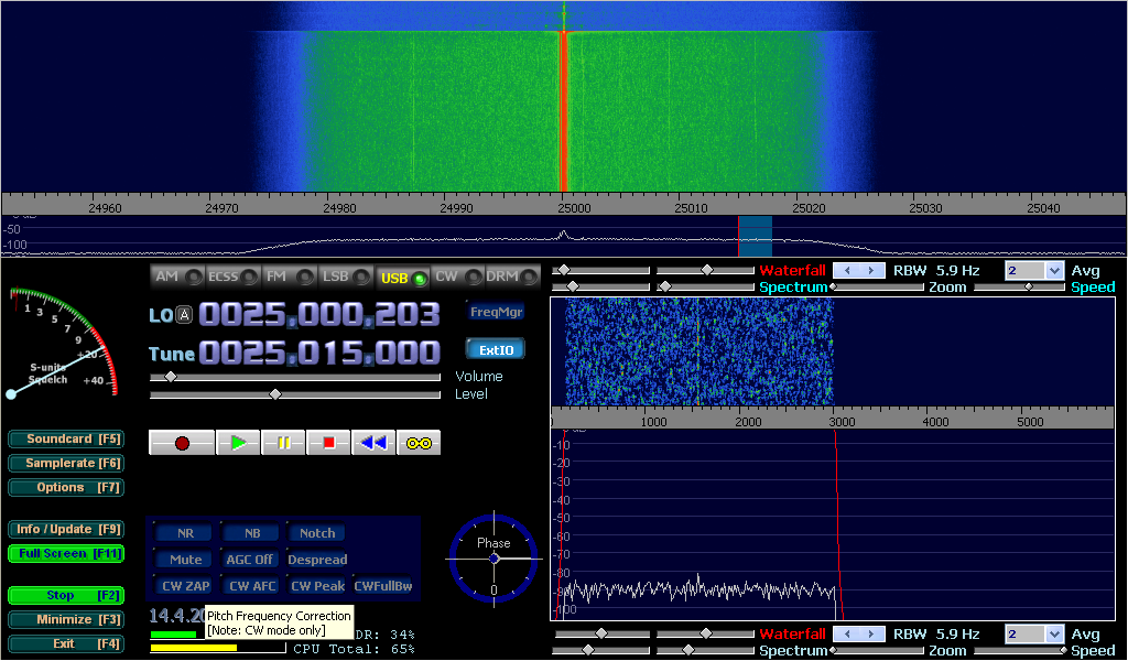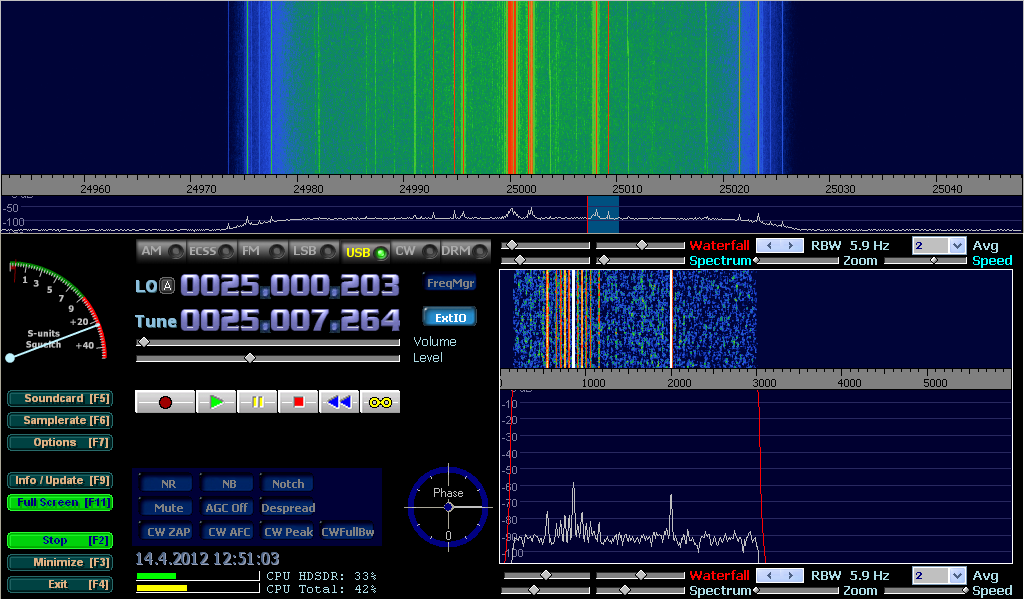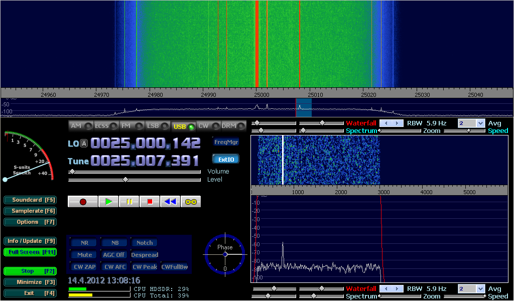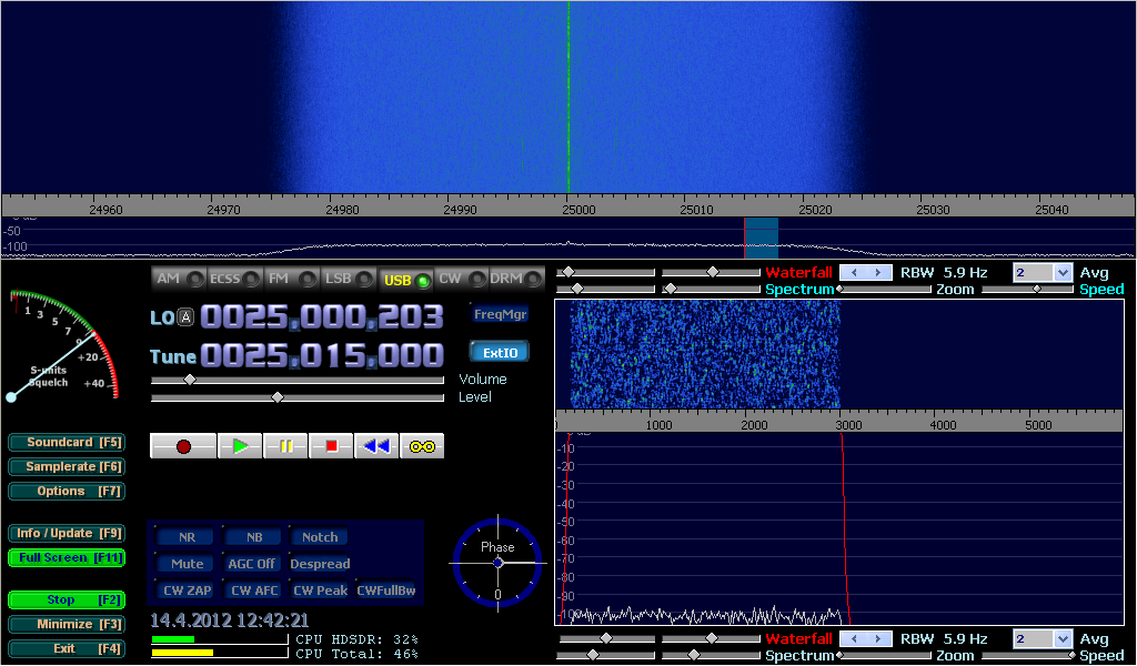 First, let’s see a picture of a correctly set receiver without a connected antenna and with “Creative Soundblaster USB External live!” sound card.